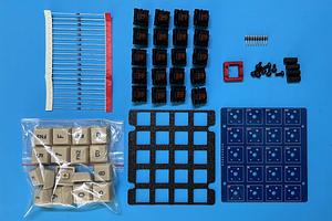 I provide the Keypad in Kitset form, so you can easily assemble it with your own soldering iron. All that is required is to solder in place the supplied 18 clip-in Tactile Keyswitches, and the supplied pin headers. Four Nylon PCB Stand-offs and eight Nylon Screws are also supplied, for mounting your Keypad.
